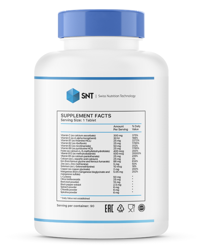 | Витамин B12 (как метилкобаламин) | 500 мкг | 20000% |